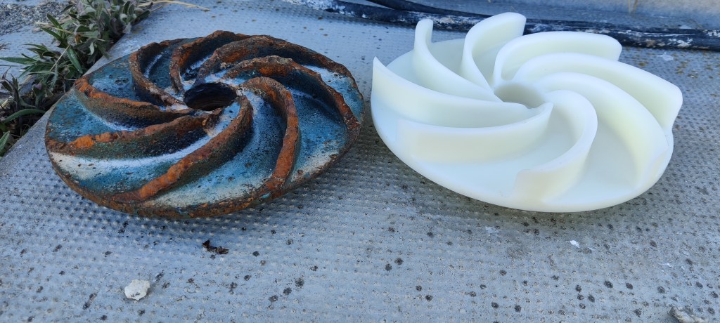 Det började med att Håkan kontaktade Björn som hade kvar alla handlingar från senast pumphjulet byttes ut 2009. Magnus hittade Dalahjulet som tagit fram ett ersättningshjul i plast då reservdelar inte längre finns. Plasthjulen är välbeprövade och har gått länge i kommunala anläggningar, enligt uppgift ska de hålla längre än de i järn, vilket tiden får utvisa om det stämmer.